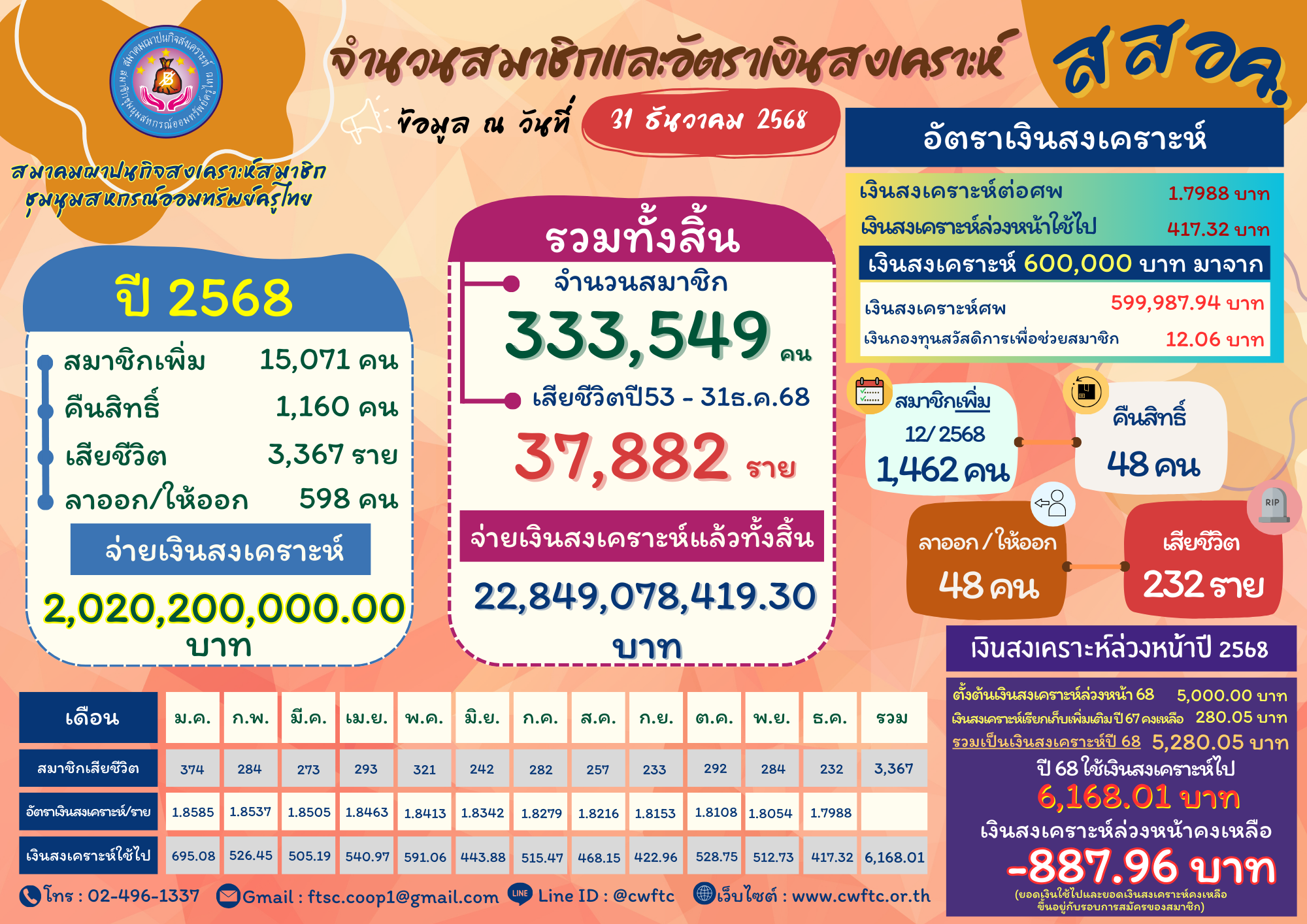 สมาคมฌาปนกิจสงเคราะห์สมาชิกชุมนุมสหกรณ์ออมทรัพย์ครูไทย มอบเงินสงเคราะห์ศพให้กับทายาทที่สมาชิกได้ระบุให้เป็นผู้รับเงินสงเคราะห์ศพ จำนวน 600,000 บาท